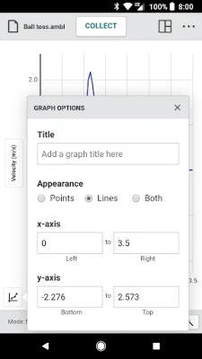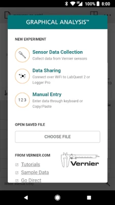 • Save files (.ambl file format) to the Cloud for exchange with Graphical Analysis on other Android™ devices, Chromebooks™, Windows® and macOS® computers, and iOS devices