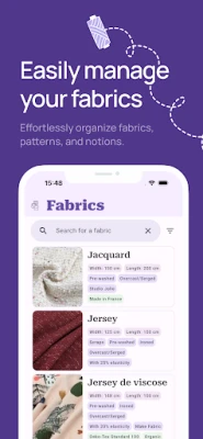 Easily keep track of your fabric stash. For each fabric, add a photo, yardage, composition, and more. Our fabric management tool helps you organize your textiles and get a quick overview of your entire collection at a glance.
